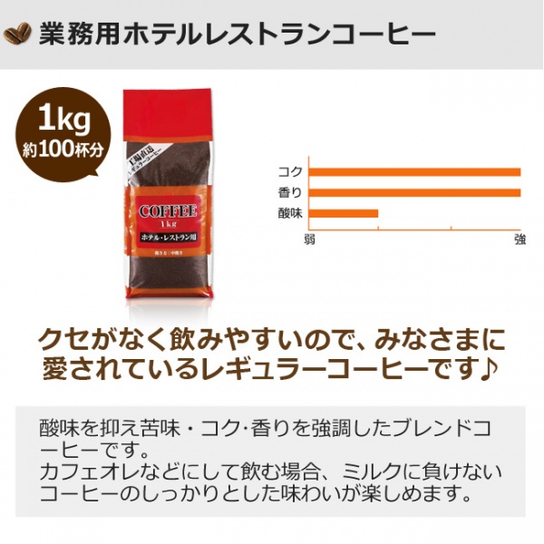 TOP > 特集 > オフィスコーヒー > レギュラーコーヒー 業務用ホテルレストラン1kg