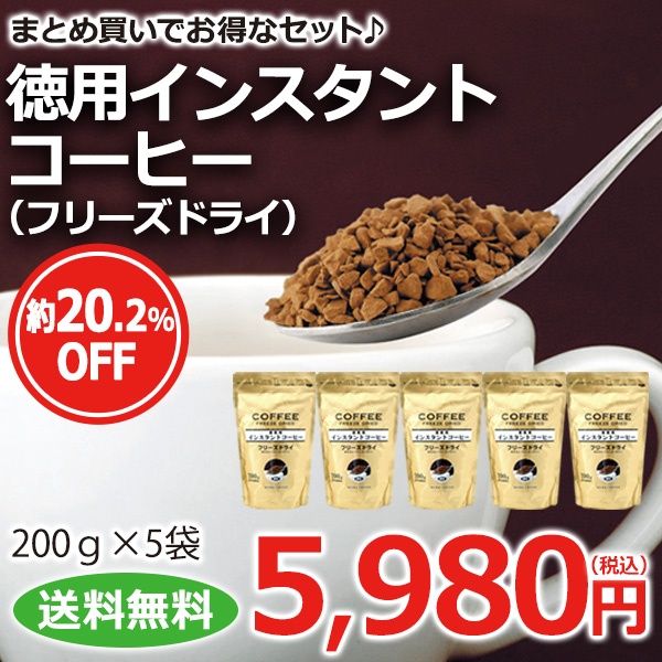 インスタントコーヒー フリーズドライ徳用5袋セット