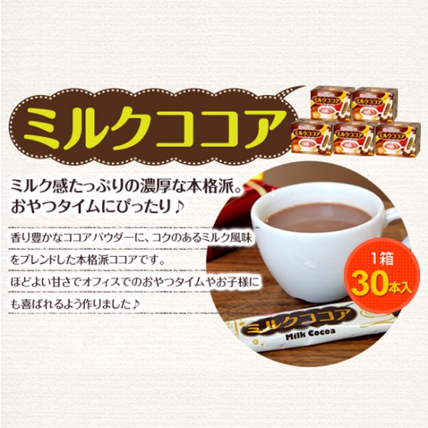 TOP > 特集 > オフィスコーヒー > ミルクココア30(30本箱入)【広島発☆コーヒー通販カフェ工房】