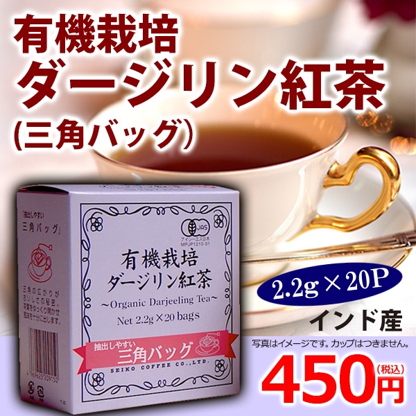 TOP > 特集 > 有機栽培ダージリン紅茶三角バッグ(2.2g×20袋)【広島発☆コーヒー通販カフェ工房】