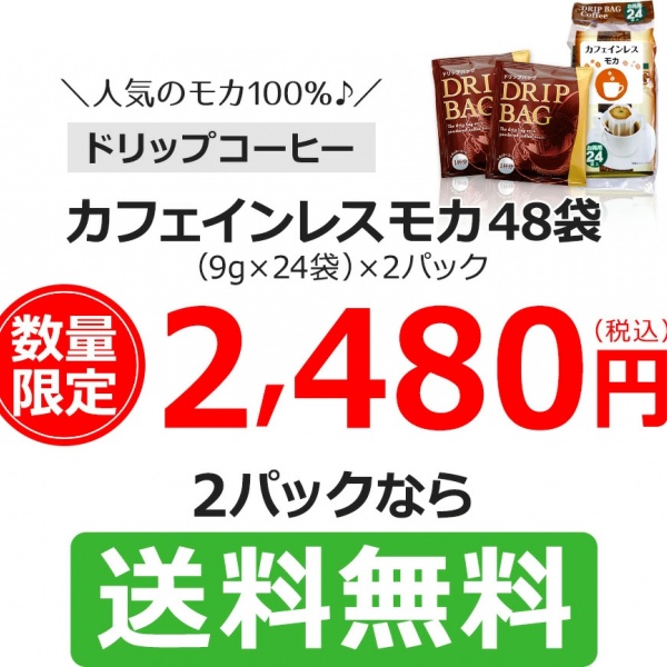 TOP > 特集 > ドリップコーヒーカフェインレスモカ24袋×2|送料無料