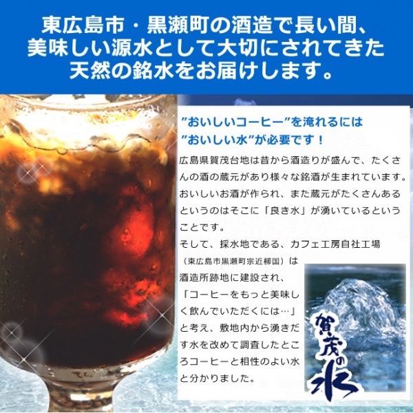 「賀茂の水」はミネラル分の少ない軟水なので、コーヒー豆が持っている本来のうまみを引き出します。