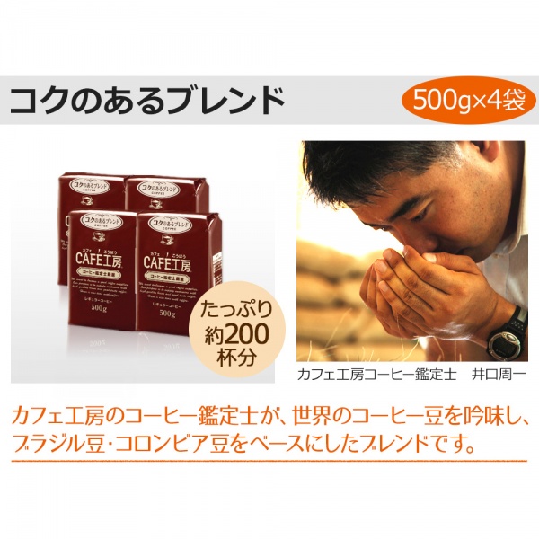 TOP > お得セット(全商品) > レギュラー500g・250gお得セット > 【送料無料】レギュラーコーヒー コクのあるブレンド2kg (500g×4袋)