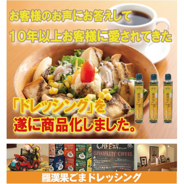 広島発 カフェ工房直営レストランで大人気です。コーヒー屋が作った「羅漢果ごまドレッシング」です。