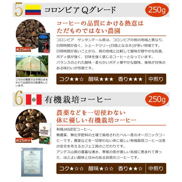 TOP > 送料無料(全商品) > 高級レギュラーコーヒー8種セット2kg 【広島発☆コーヒー通販カフェ工房】