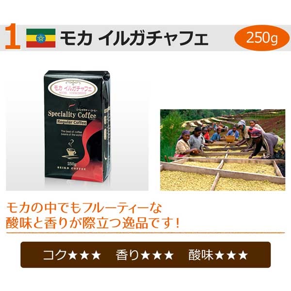 【送料無料】フルーティーな酸味のモカイルガチャフェとコクと香りのコロンビアQグレードコーヒーの送料無料セットです♪